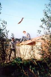 Bereits im Herbst 2019 haben wir begonnen, das große Spielhaus in Eigenleistung neu einzudecken. Das Ergebnis kann sich sehen lassen. Unterstand und balancieren auf dem Dach werden je nach Wetterlage gern genutzt